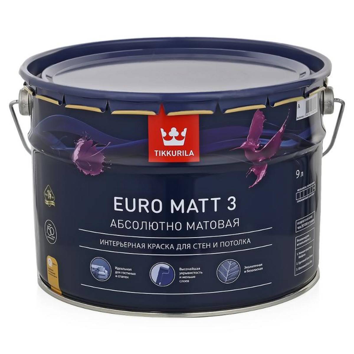 Характеристики товара "Краска Тиккурила Евро-3 А латексная глубоко матовая 9л"