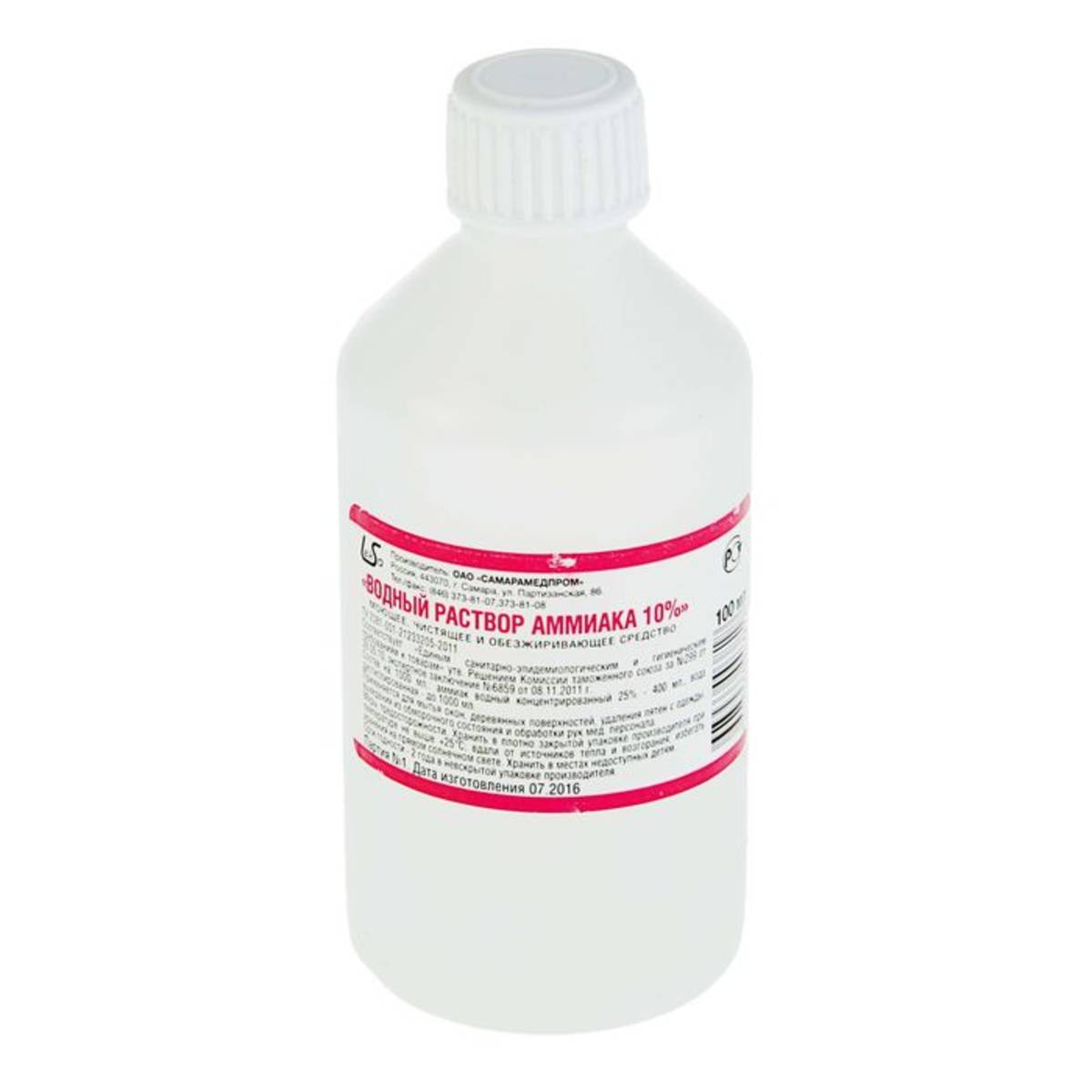 Характеристики товара "Аммиак водный / нашатырный спирт (500 мл)"