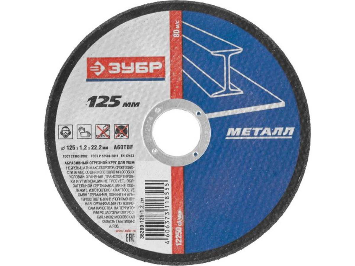 Описание Круг отрезной Зубр 125-1,2-22,23мм мет.