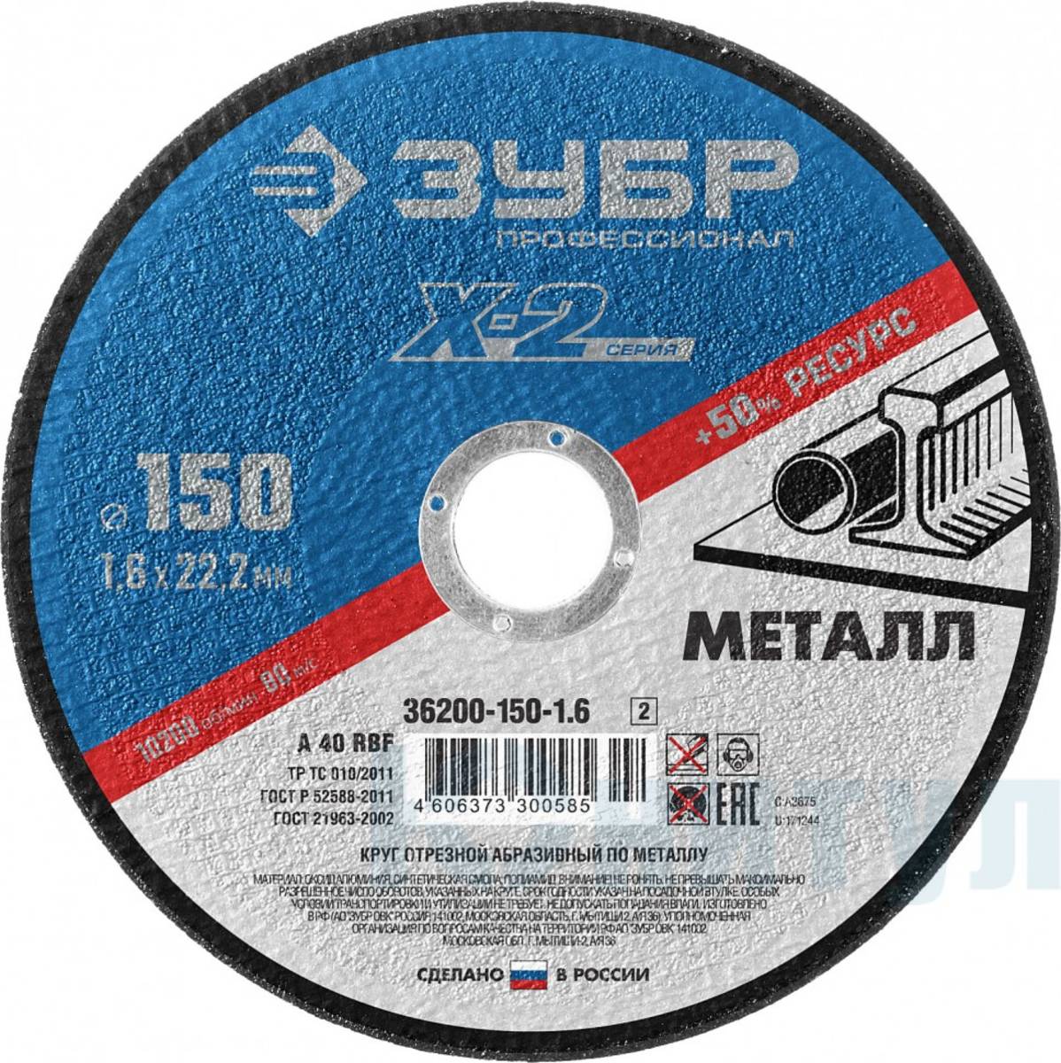 Описание Круг отрезной Зубр 150-1,6-22,23мм мет.