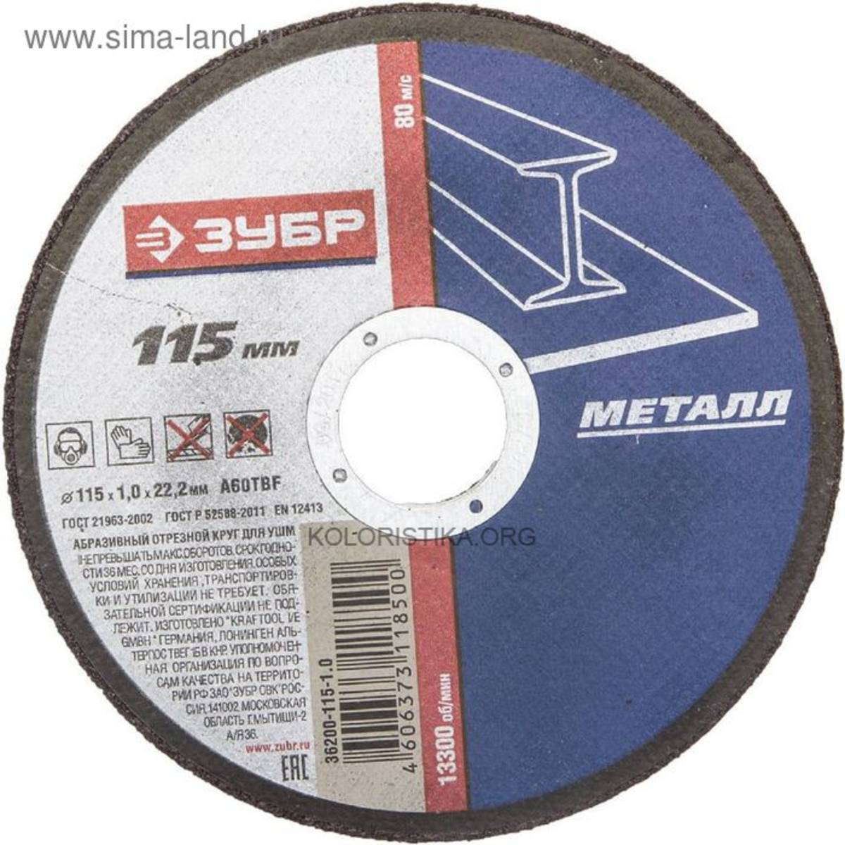 Описание Круг отрезной-аброзивный Зубр 115-1,2-22,2мм мет.
