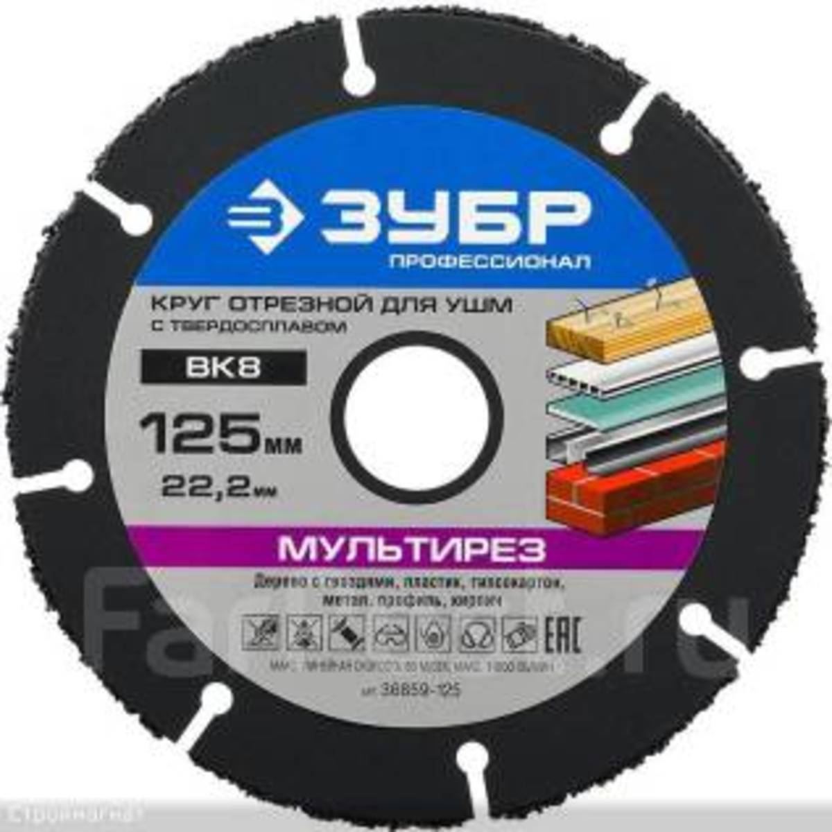 Описание Круг отрезной мультирез-вк8 Зубр 125-22,2мм
